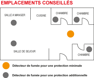 La loi exige que chaque logement soit équipé AU MINIMUM d'1 détecteur. Nous vous conseillons d'installer 1 détecteur dans chaque pièce à l'exception de la cuisine et de la salle d'eau.